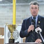 Alabama State Bar Executive Director Terri Lovell joined with Alabama Attorney General Steve Marshall on Tuesday, May 17, 2022, to announce this year’s winners and celebrate the fundraiser’s success for Alabama’s food banks and the populations they serve. The law firm or legal organization that donated the most per employee this year was Martin & Helms, PC in Huntsville. Clay Martin received The Attorney General’s Cup on behalf of his firm for the third year in a row, with other honors to other firms awarded in categories based on the firm’s size.